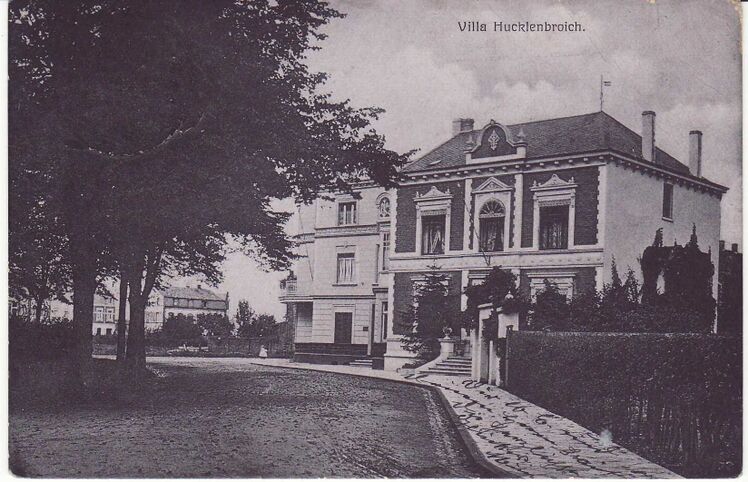 Zur Navigation springenZur Suche springenVilla Hucklenbroich, wohl benannt nach dem Bauherrn Apotheker August Hucklenbroich, der auch vom 17.9.1901 bis 18.7.1907 II. Beigeordneter der Stadt Kempen war und im August 1898 sein 50jähriges Jubelfest als Apotheker feierte. [1]