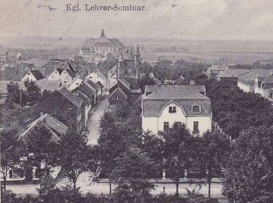 Burgwall mit Pferdekarren (Quelle: Hella Furtwängler, Facebook, Du kommst aus Kempen wenn..., 13.8.2012). Das weiße Gebäude links (früher Burgwall 1) ist die Rückseite des Hauses Burgring 10b (geändert in den 1960er in Nr. 4). Dahinter das umgebaute ehem. Wirtschaftsgebäude zwischen dem früheren Haus Burgwall 1 und 3 ist die Rückseite des Hauses Hauses Burgring 10a (später Nr. 6).