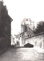 Haus Nr. 4 gut als Wohnhaus erkennbar. Es ist das hohe dunkle Gebäude links kurz nach Beginn des Burgwalls mit der Jauchekarre vor dem Haus. Foto nach 1910 entstanden.