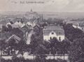Burgwall u.a. aus der Luft. In der Mitte die Häuserzeile Burgwall 4 - 7. Das größere Gebäude unterhalb des handschriftlichen Kreuzes ist Haus Nr. 4.
