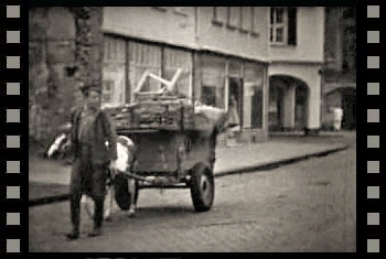 Filmausschnitt von 1957: Gemüsetransport mit dem Ponywagen. im Hintergrund Haus Winterscheidt