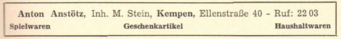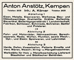 • Anstötz, A., Fa., Eisenwaren, Haus- und Küchengeräte, Inhaber: Aloys Körner