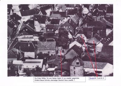 Das angebaute Fachwerkhaus mit den Kindern vor dem Eingang war Josefstr. 3
