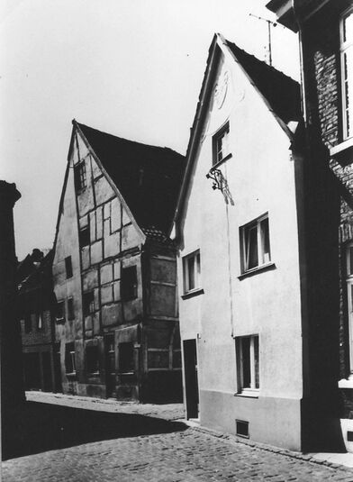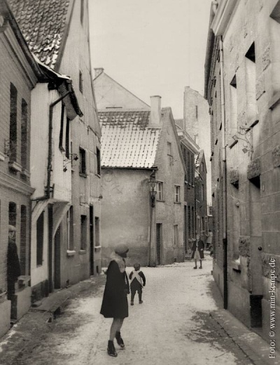 Geradeaus an der Straßenecke stand das Hausnummer 20, das damals dem Bau der Heilig-Geist-Straße weichen musste.