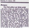 Das Haus Oelstr. 21 mit dem dahinterliegenden Gartengrundstück, das am Ende ein Tor gegenüber Josefstr. 7 hatte, wurde ca. 1915/6 von dem aus Goch stammenden Dachdeckermeister Bernhard Schöndeling erworben. Dieser hatte am 01.02.1916 die Kempenerin Katharina Fleuren geheiratet. Der im hinteren Bereich bestehende große gemauerte Schuppen wurde für den Betrieb genutzt. Für diese Zwecke wurde dann noch ein weiterer Schuppen in Holzbauweise an der Mauer neben dem Tor errichtet. B. Schöndeling wurde ein bekannter Dachdecker, der u.a. das Dach der Mühle, den Kirchturm und 1936 auch das Dach der Lyzeums erneuerte. Bei der Arbeit an diesem Gebäude verunglückte er am 17. Januar 1936 tödlich (s. Zeitungsnotiz in der Bildergalerie).