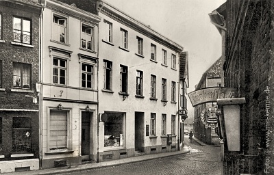 1930er Jahre, v.l.n.re.: Nr. 2, Metzgerei Heisters, Nr. 3 Fischgeschäft Lennartz, Nr. 4 Privathaus mit Ladengeschäft (heute durch Neubau ersetzt).