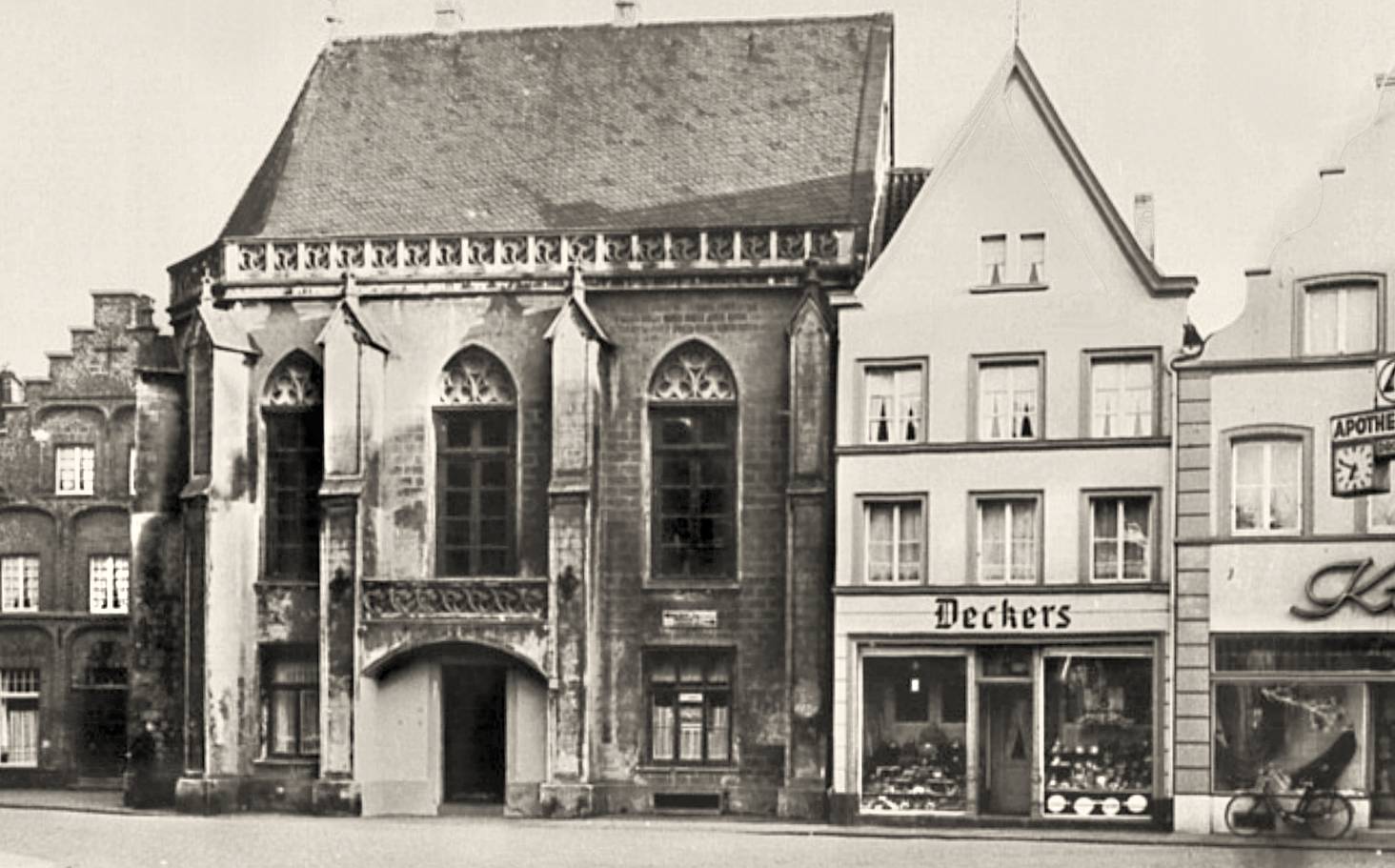 | 11:57, 19. Jul. 2013 | Heiliggeistkapelle-damals-heute.jpg (Datei) | 65 KB | Mutzii | Das hl.Geist-Hospital lag am Markt, direkt neben Markt Nr. 5, Wand an Wand. Es wurde 1410 von einem Uerdinger Brauer, der aus Kempen stammte, gestiftet. Der Kapellenbau entstand um 1421 und wurde direkt anschließend an das Hospital der damals prosperi… | 1 | |