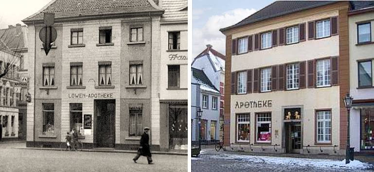 | 13:32, 19. Jul. 2013 | Apotheke-damals-heute.jpg (Datei) | 54 KB | Mutzii | Am 17. Februar 1810 teilt Kempens Bürgermeister Thissen dem Aachener Präfekten in einem Brief mit, er habe dem ehrenwerten Herrn Nicolas Marcelli, Apotheker in Kempen, die Konzession für eine Apotheke zugestellt. 1887 zog die Löwen-Apotheke an den … | 1 | |