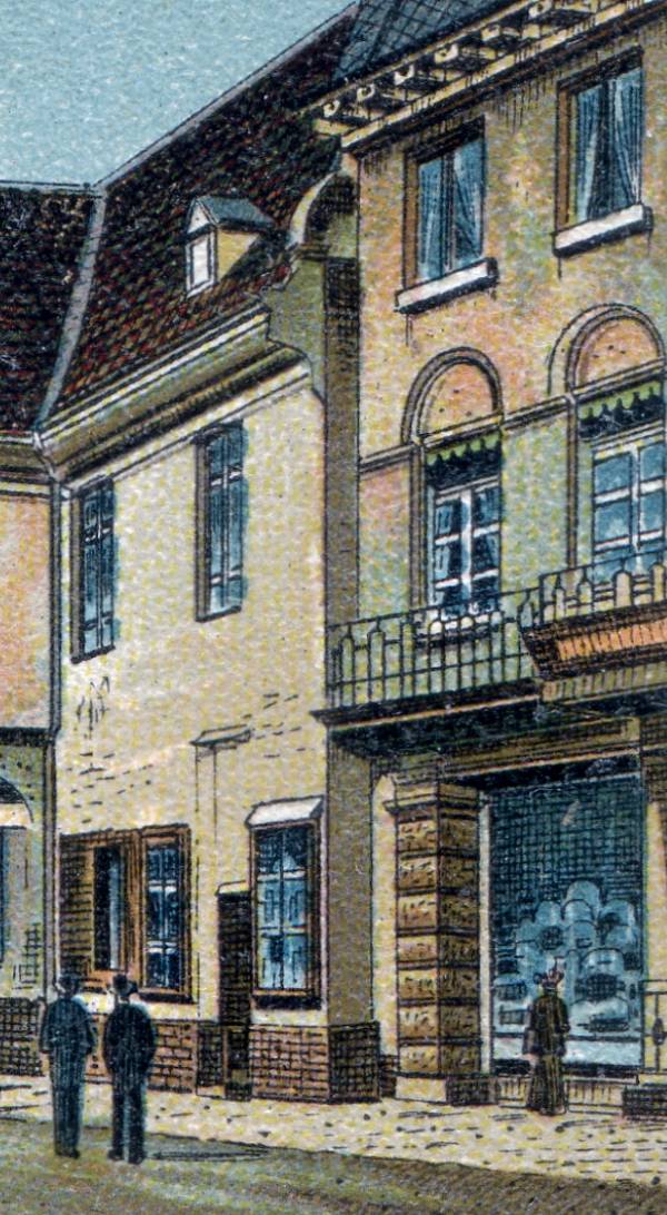 | 13:25, 27. Jul. 2013 | Vergleich-markt-18-19.jpg (Datei) | 238 KB | Mutzii | 1903: Die Häuser Nr. 18 bis Nr. 20 am Markt in ihrem ursprünglichem Zustand: Links Haus Nr.18, alleinstehend mit Satteldach und Walmgiebel, daneben ein freier Vorplatz. Die Nr. 19 stand weit zurück gesetzt. Erst um 1904/5 wurden zwei Häuser davor g… | 1 | |