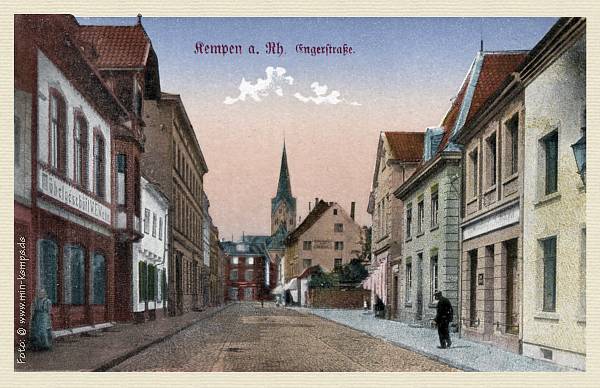Das Haus mit dem markanten Mansardengiebel, Engerstraße 45/46, war immer eine "gute Adresse" für lebhaftes Geschäftsleben. U.a. hatte hier auch Möbel Tendyck, später Kaufhaus Lamp und heute die Filialen eines Telekommunikationsunternehmen, eines Schuhgeschäftes und einer Modekette ihr Ladenlokal.