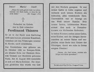 [[File:Totenzettel Ferdinand Thissen.jpg|300px|miniatur|links|Totenzettel Ferdinand Thissen]]