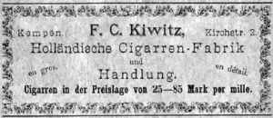 [[Datei:Anzeige Kiwitz Kirchstraße 2.JPG.png|mini|Anzeige der Fa. Kiwitz im Adressbuch von 1898]]
