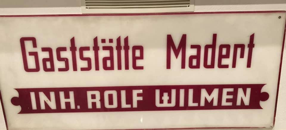 - (Herunterladen) Schild Gaststätte Madert Inh Wilmen.png . . 960 × 438 . . 533 KB . . Rainer . . 10:19, 4. Jun. 2021