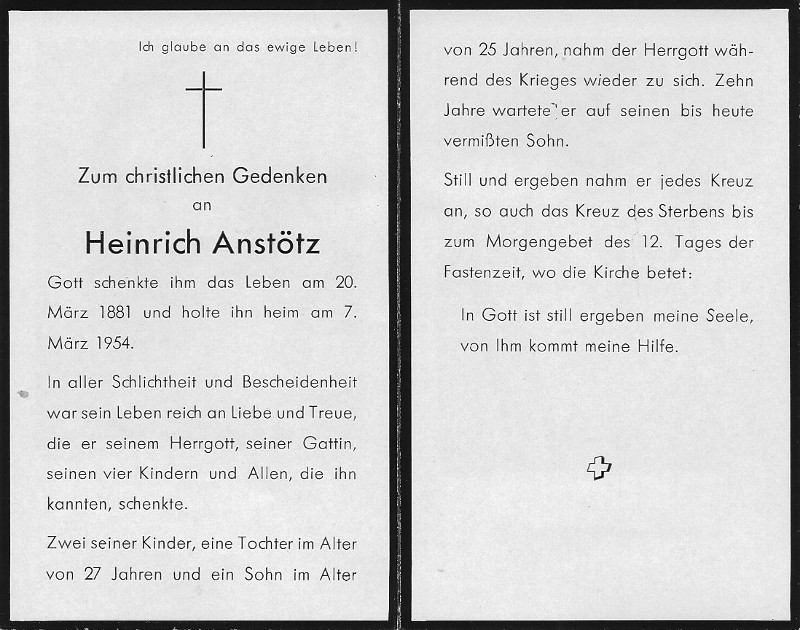| 10:59, 26. Mär. 2019 | Totenzettel Josef Anstötz 1944.jpg (Datei) | 121 KB | Datei hochgeladen mit MsUpload | 1 | |