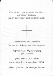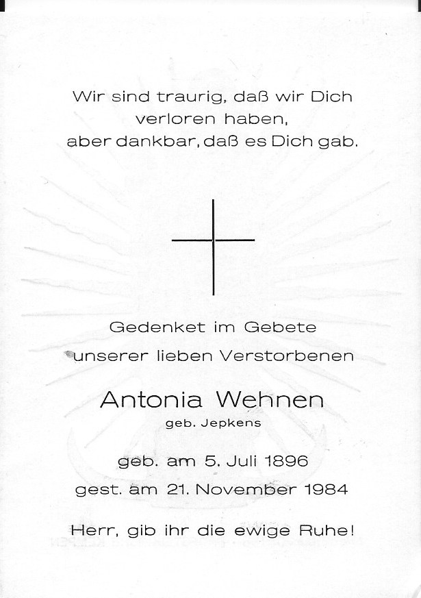 | 13:55, 25. Mär. 2019 | Totenzettel Antonia Wehnen geb Jepkens.jpg (Datei) | 81 KB | Datei hochgeladen mit MsUpload | 1 | |