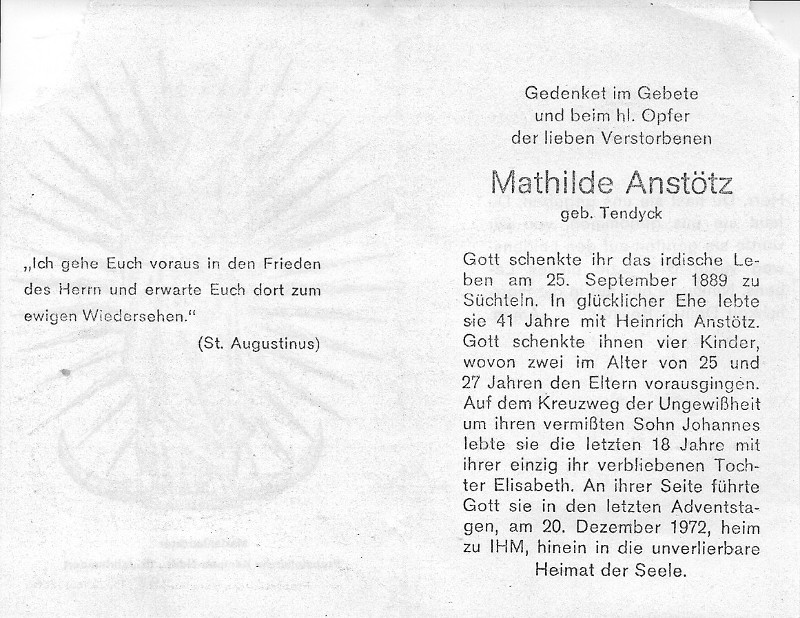 | 10:59, 26. Mär. 2019 | Totenzettel Mathilde Anstötz geb Tendyck 1972.jpg (Datei) | 150 KB | Datei hochgeladen mit MsUpload | 1 | |