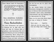 | 16:50, 29. Mär. 2019 | Totenzettel Buckenhüskes Franz 1943.jpg (Datei) | 188 KB | Datei hochgeladen mit MsUpload | 1 | |