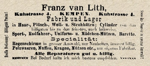 500px|mini|links|Anzeige im Adressbuch der Stadt Kempen von 1898